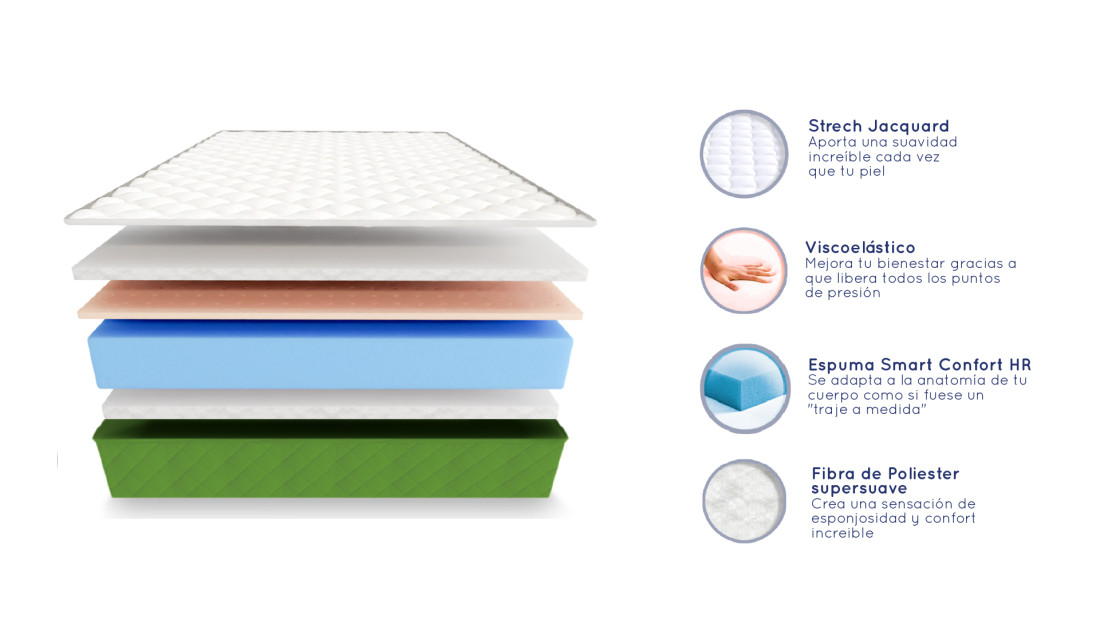 Espuma Smart Confort: Mejora tu bienestar gracias a que libera todos los puntos de presión aporta una suavidad increíble cada vez que tu piel